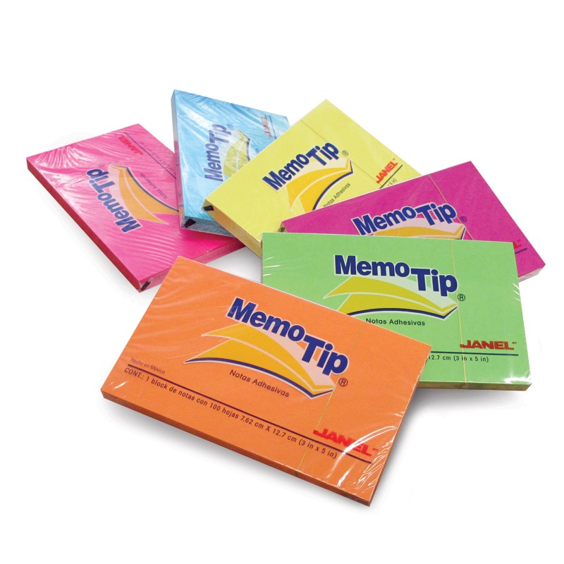 Block de notas adheribles colores neon de 3 X 5 ( 7.62 x 12.7 cm ), block con 100 hojas.MEMO-TIP C-6560305797